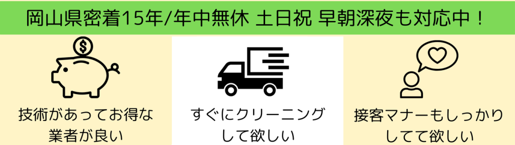「HOUSE CLEAN岡山」をご利用頂きましたお客様の声を紹介いたします。ご依頼前の参考にしてみてください!